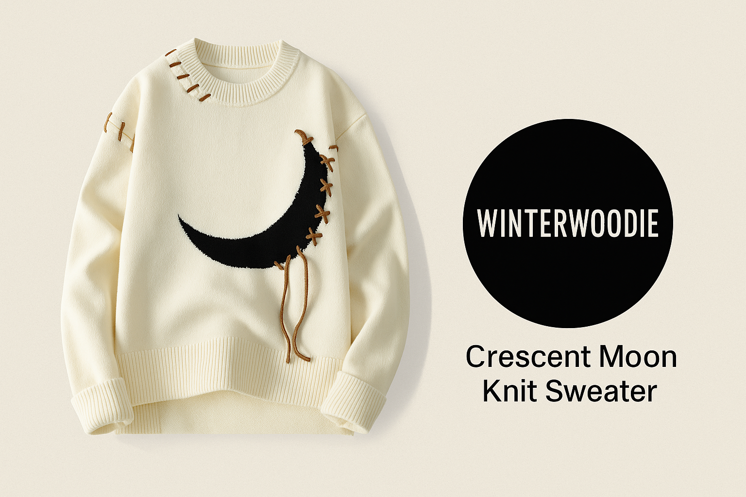 Winterwoodie Modern Block Knit Sweater – Minimal Cream with Artistic Accents